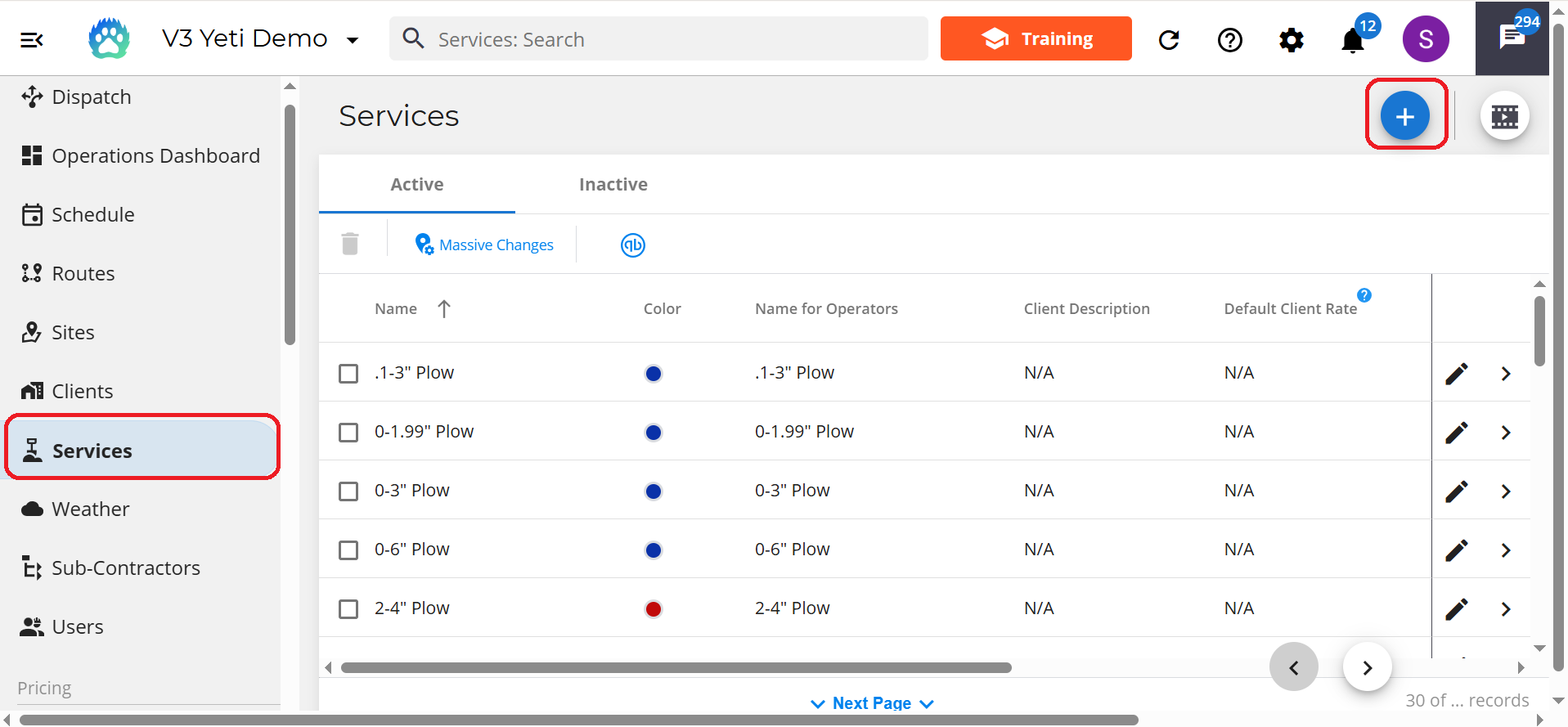 To start we need to create a new Service. Head over to the service page and click the blue plus button.