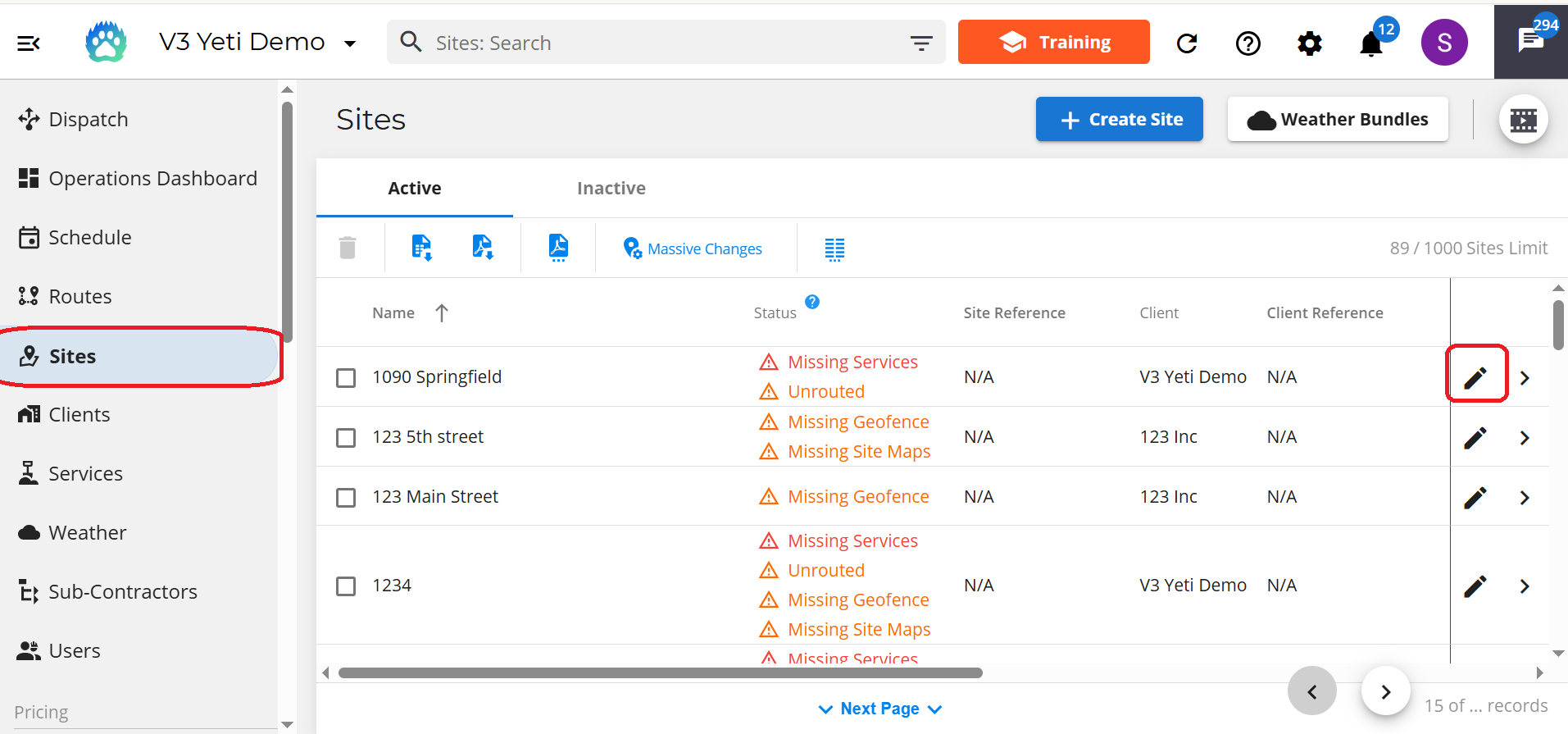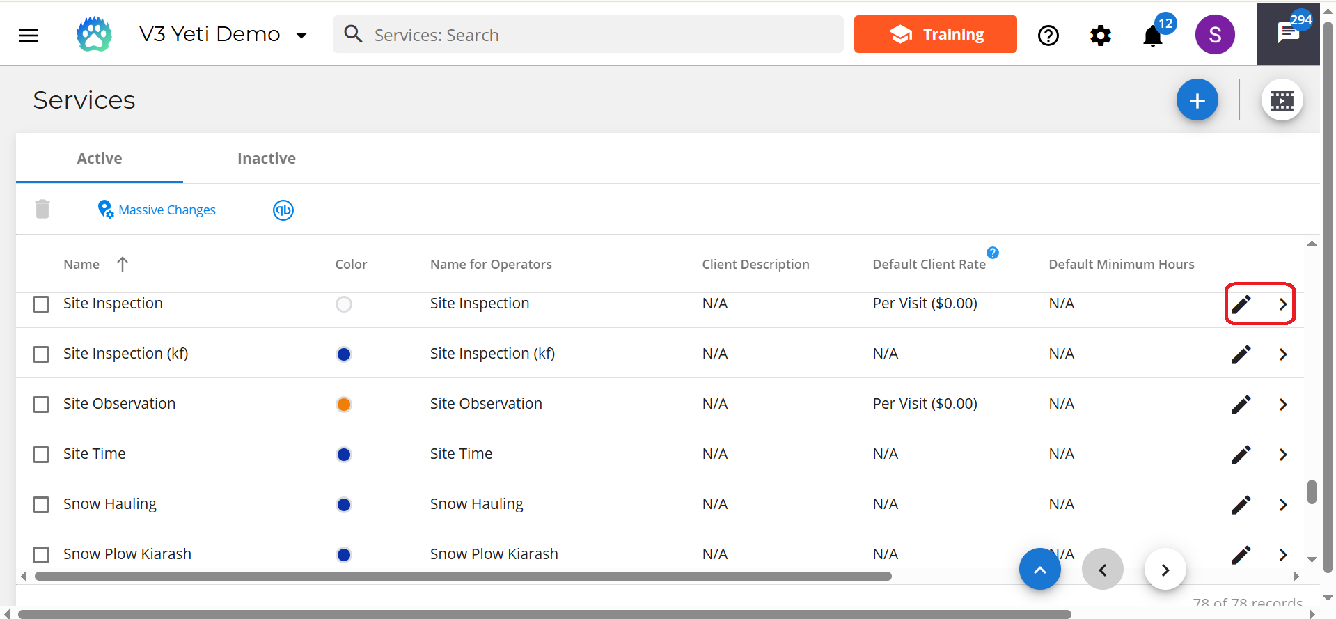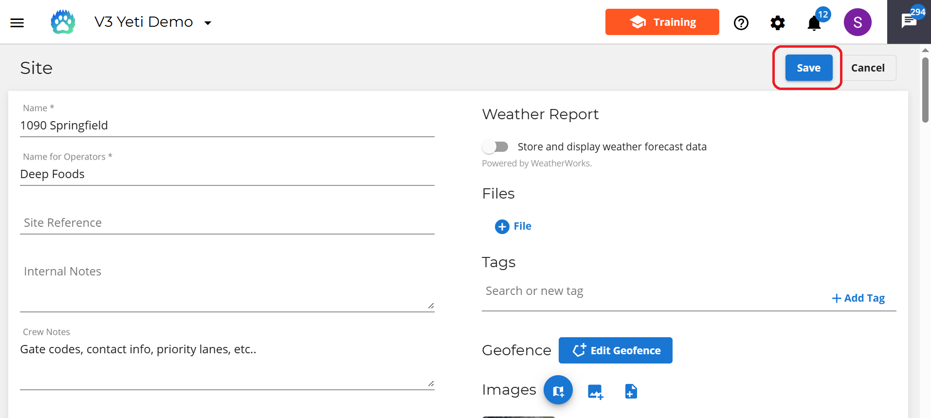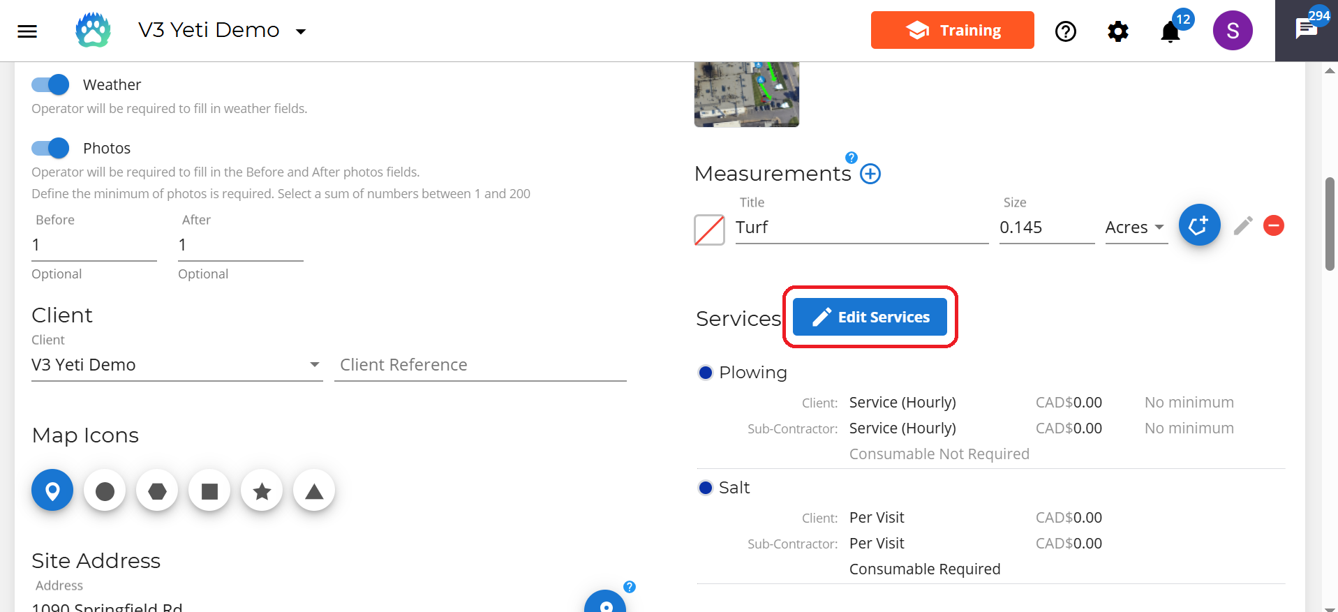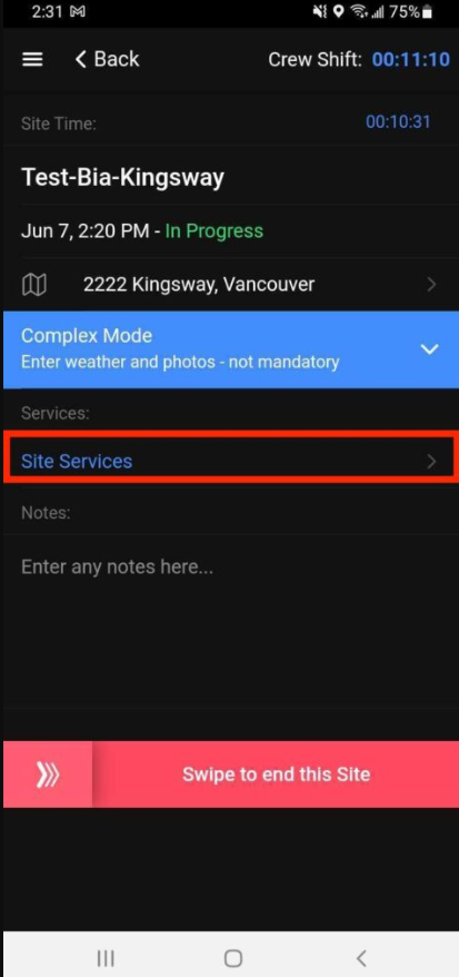 When your operator goes to services a site on the mobile app, they have a choice to note what services they performed. On the site page select site services.
