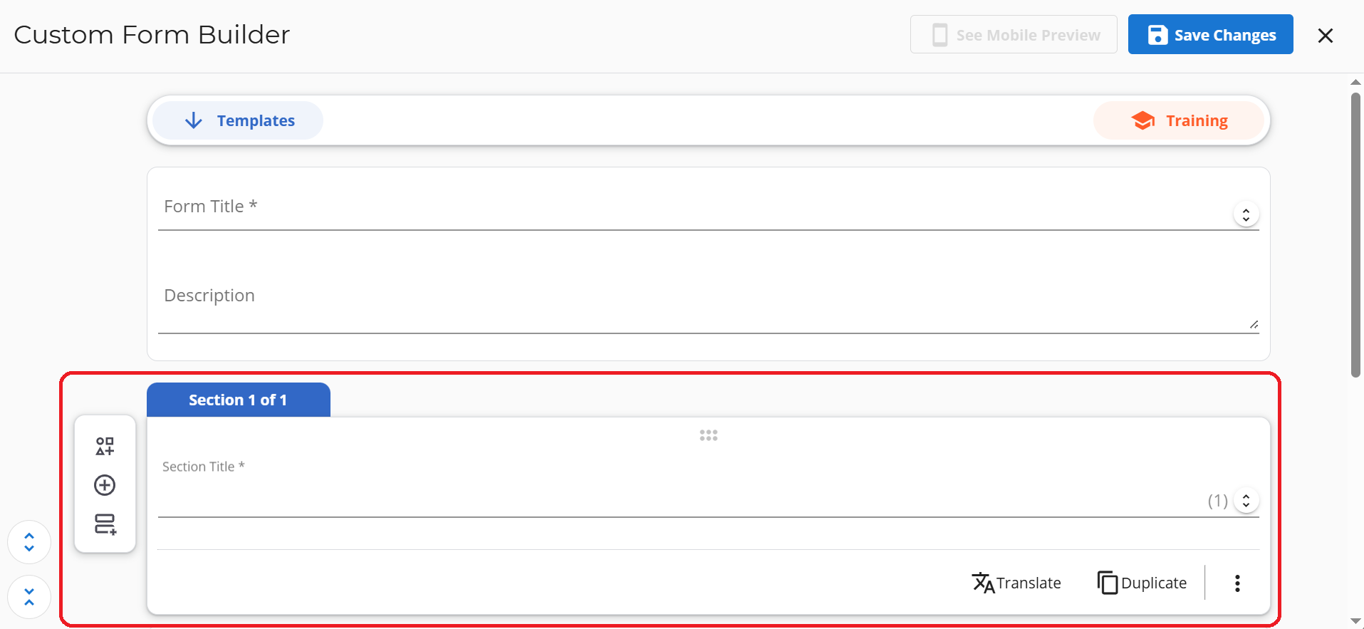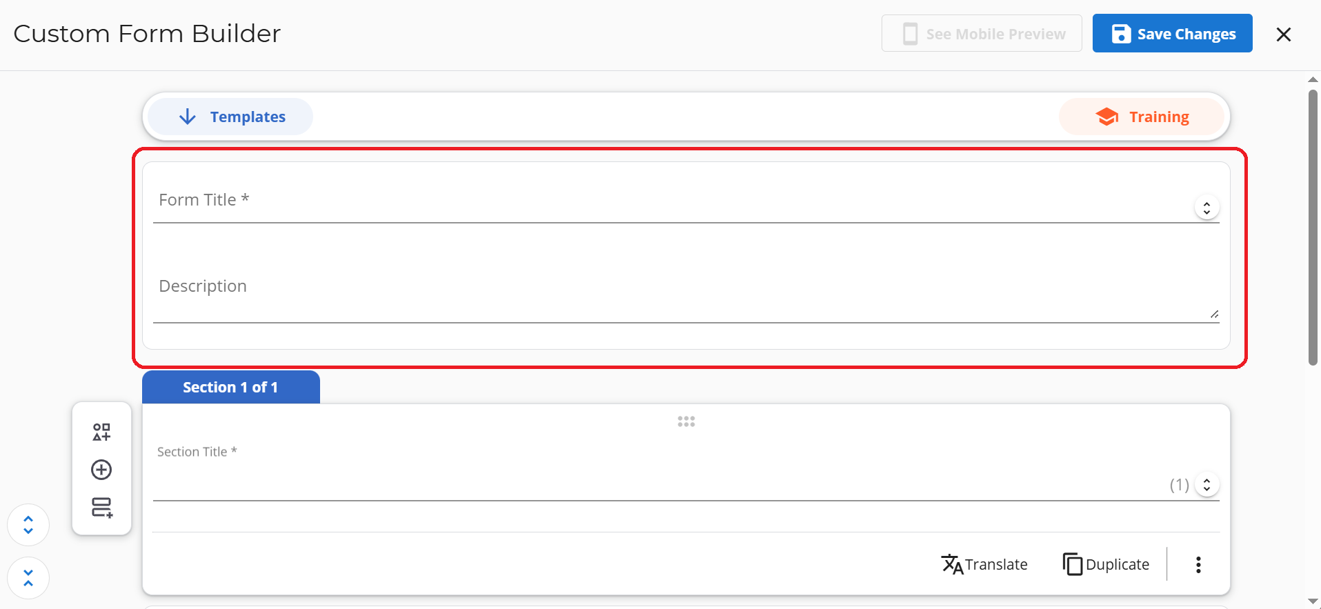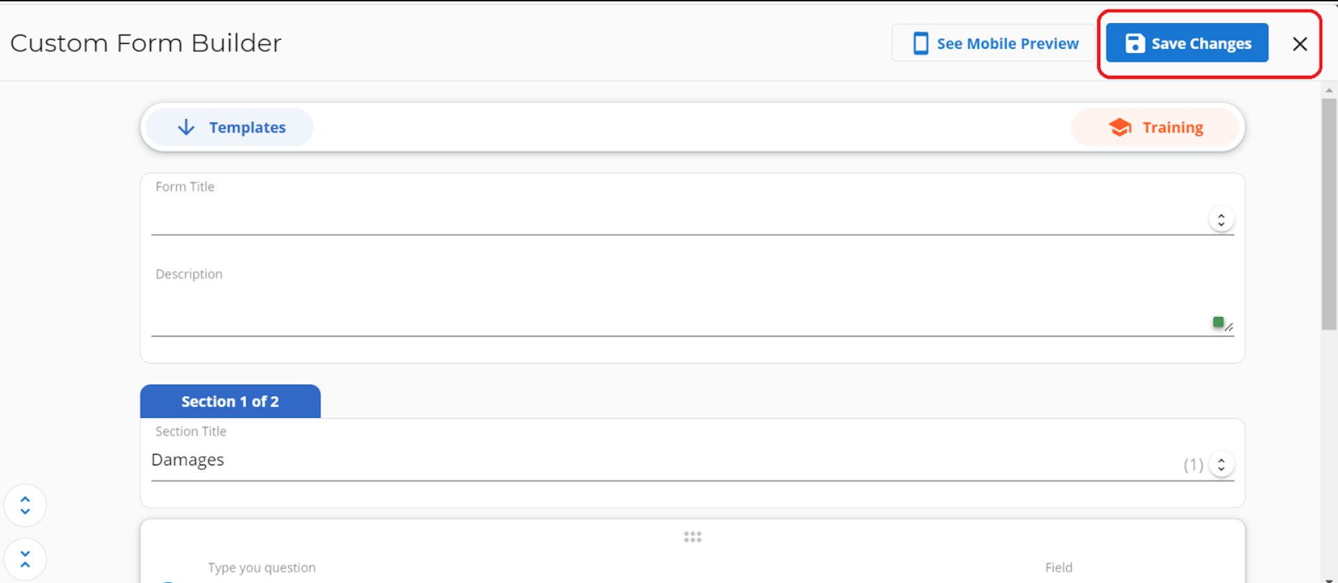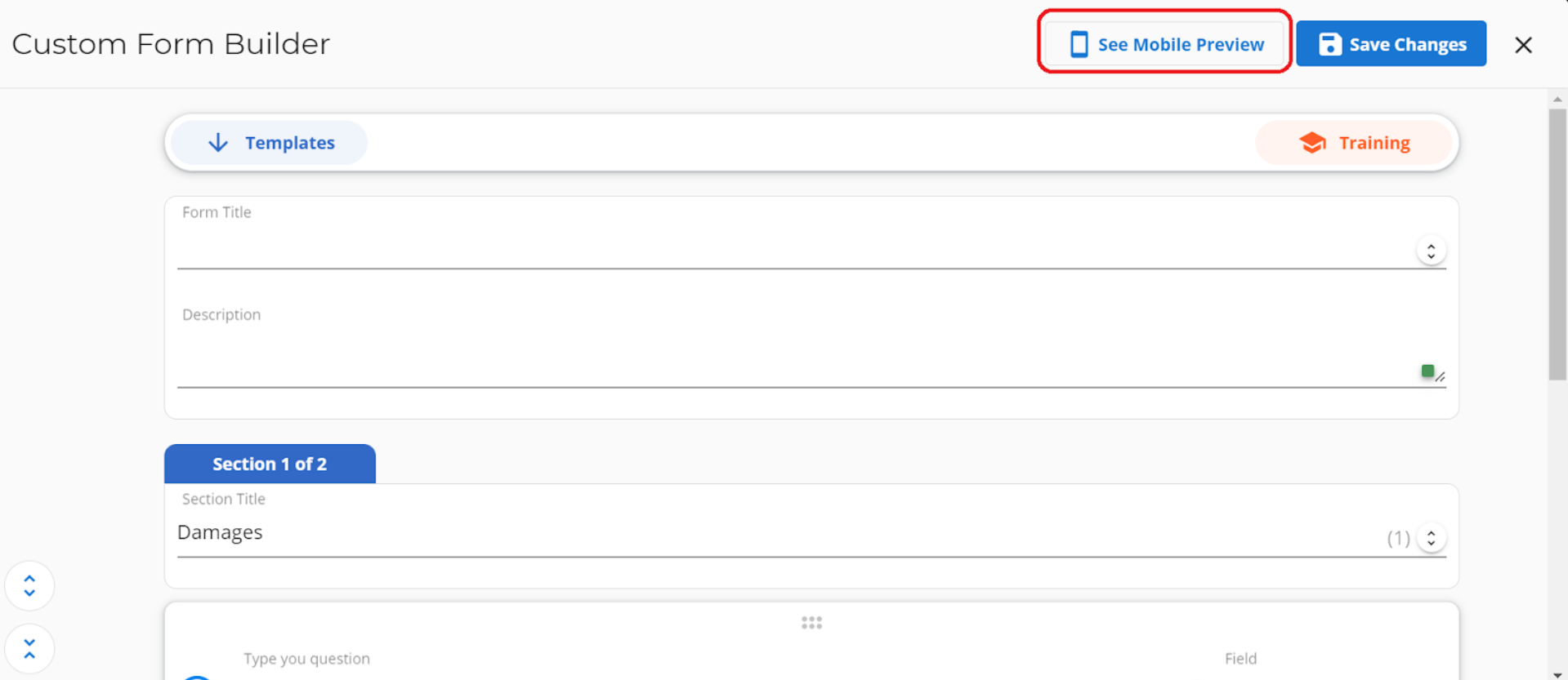 Once you are finished creating your form, you can check out how the form will appear on the mobile app by clicking the See Mobile Preview button found at the top of the form screen.