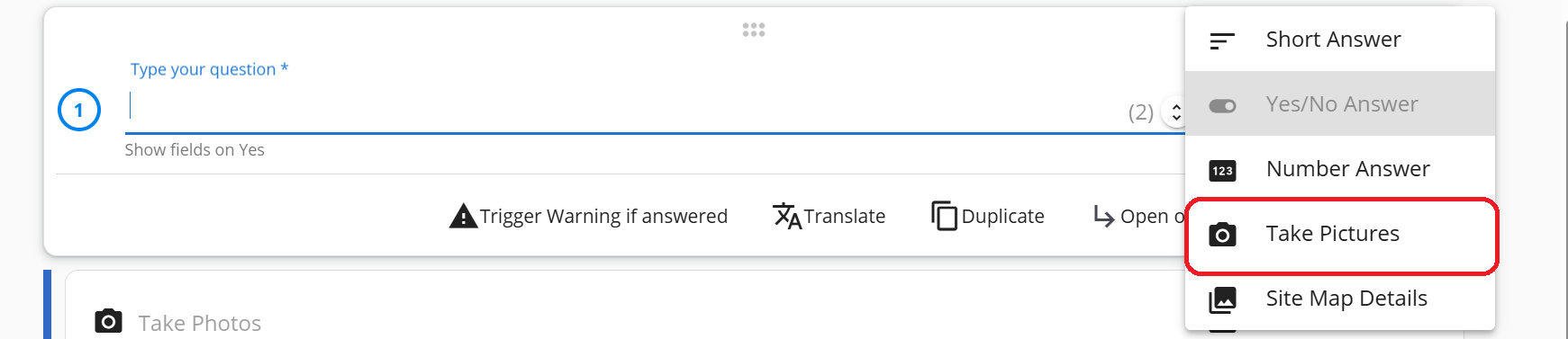 For convenience, you can click the Yes/No+Photo+Comment button to create Yes/No question, a Photo question and a Comment question simultaneously saving you time and effort.