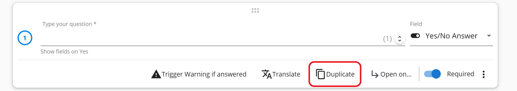 The Duplicate button will allow you to copy a question and can be useful when you want to create a similar question in the same format.