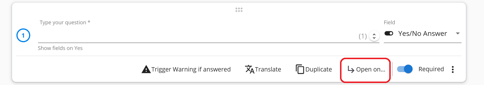 The Open-On button allows you to add sub-questions that will appear only when a specific answer is selected.
