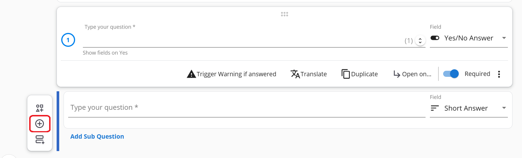 To create a new question you can click the plus button found at the left-hand side of the form.