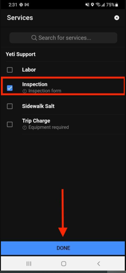 A list of services will appear, select your form and hit done. Next, click on the inspection form in order to open it up.