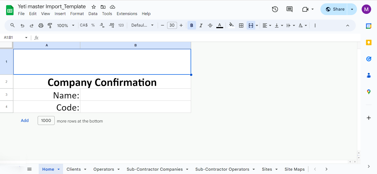 Once filled out, the customer will then pass it to a Yeti member of staff. The data will be checked to make sure that it is in the right format and is filled out correctly. Once this is done the company data will be uploaded to the staging environment to make sure it appears in the Yeti environment as it should.