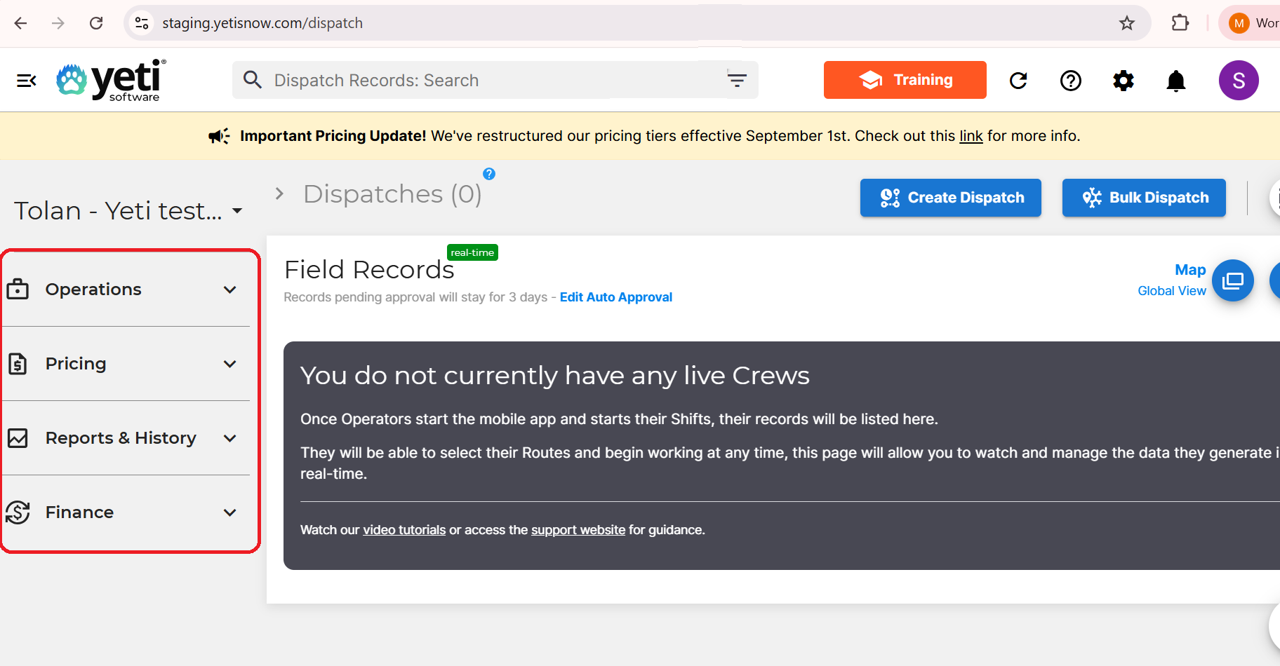If you are running into any issues with the navigation bar please reach out to support@yetisoftware.com.