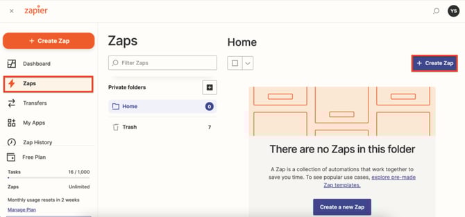 34. Now you can see the link that you created on the page "Zaps". You can rename this link as "Create".
