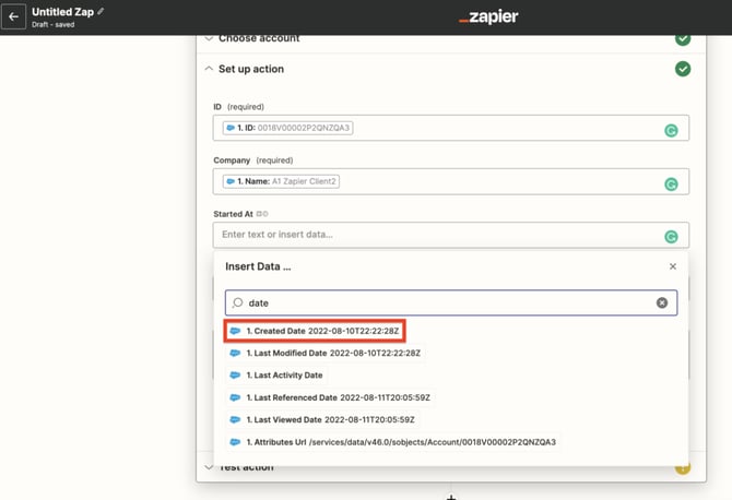 27. Search for "date" and select "Created Date" for "Started At" field.