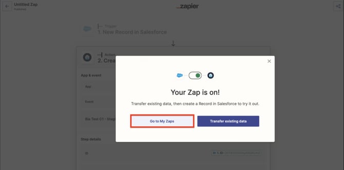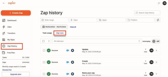 38. All records in Salesforce that you created or edited can be found in "Zap History" > "Zap runs".