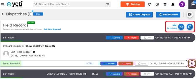 - Map Pop-Up: Opens a small map view directly within the Dispatch page.