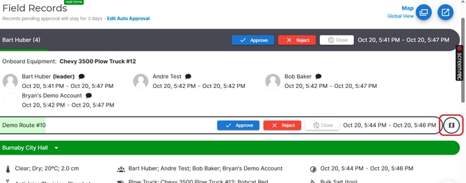 - Playback Controls: Replay the entire route to see where crews traveled and stopped.