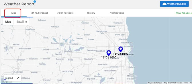 The Weather Report Map overlays real-time and forecasted weather data to help you plan routes around weather conditions.