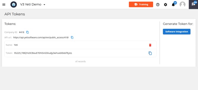 4. By using this "company_token", you have access to YETI's public API. You can get more information by visiting the YETI API documentation: doc.yetisoftware.com